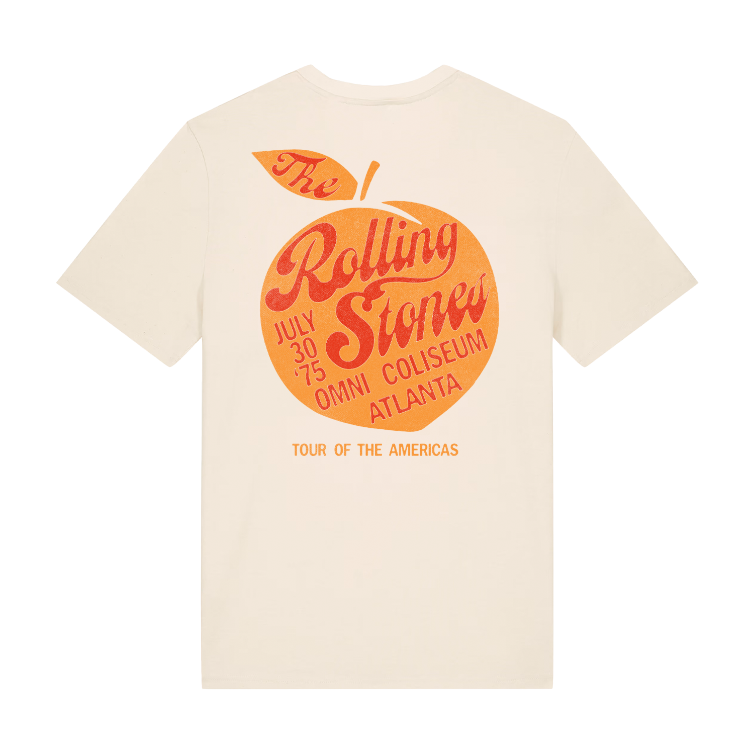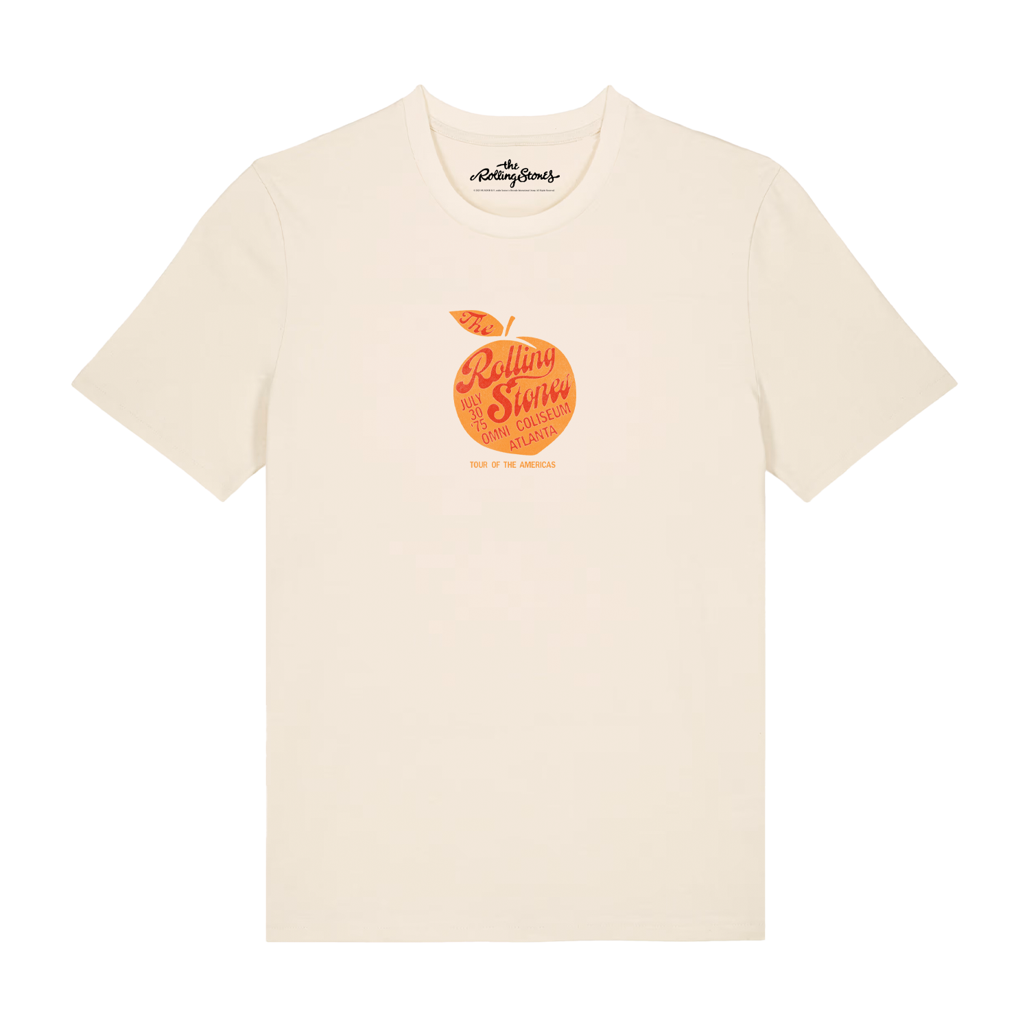 Camiseta beige inspirada en el tour de The Rolling Stones, destinada a Sur y Norteamérica en el año 1975.